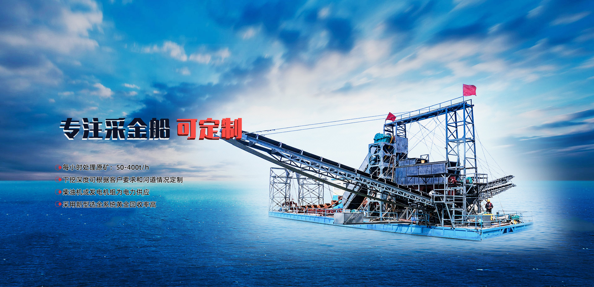 主打產品 根據礦料定制:選礦設備 沙金礦開采設備 尾礦回收設備 采金船 離心機等產品